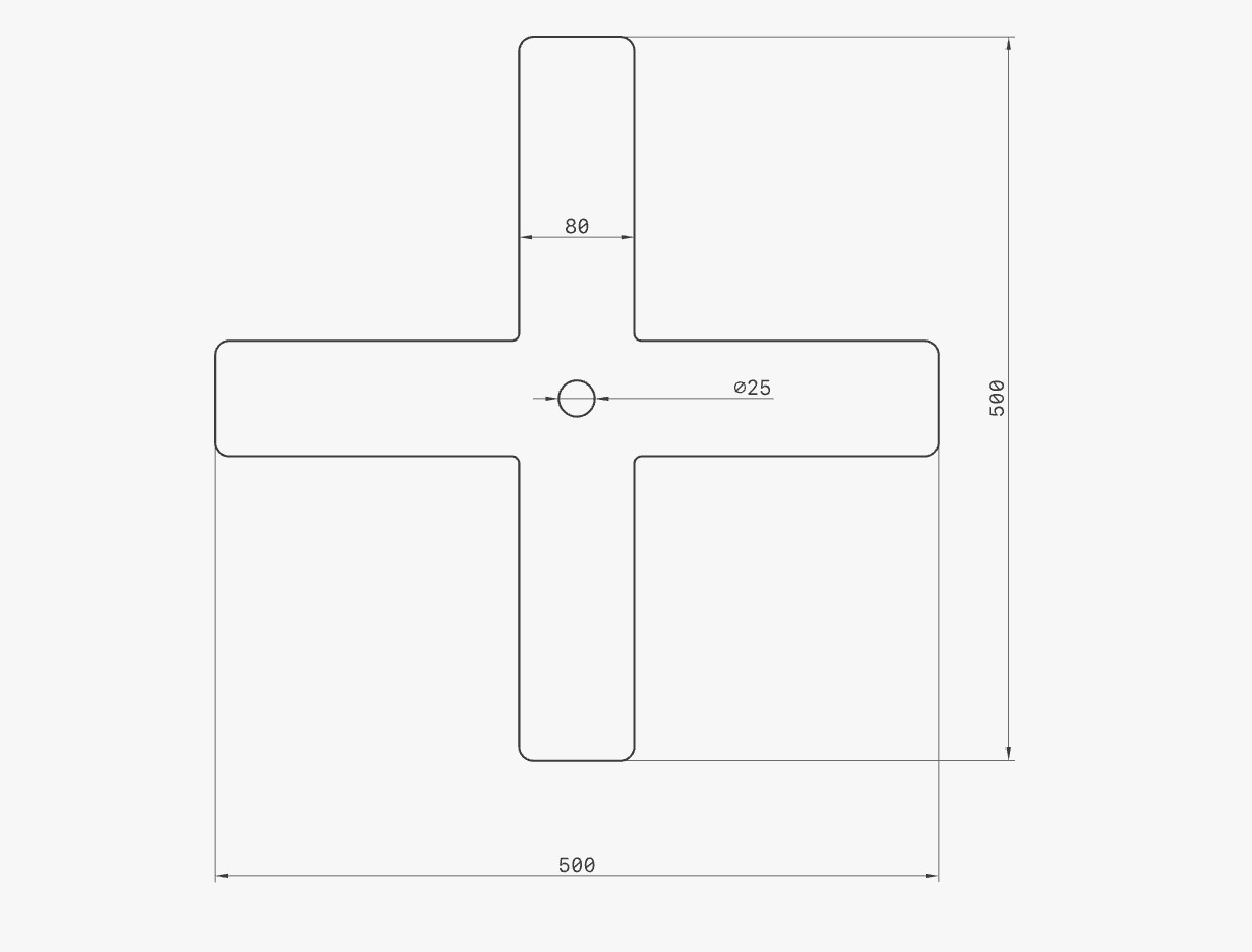 - Croix de chainage de dimensions : 50 x 50 cm – les branches ont une largeur d'acier de 80mm